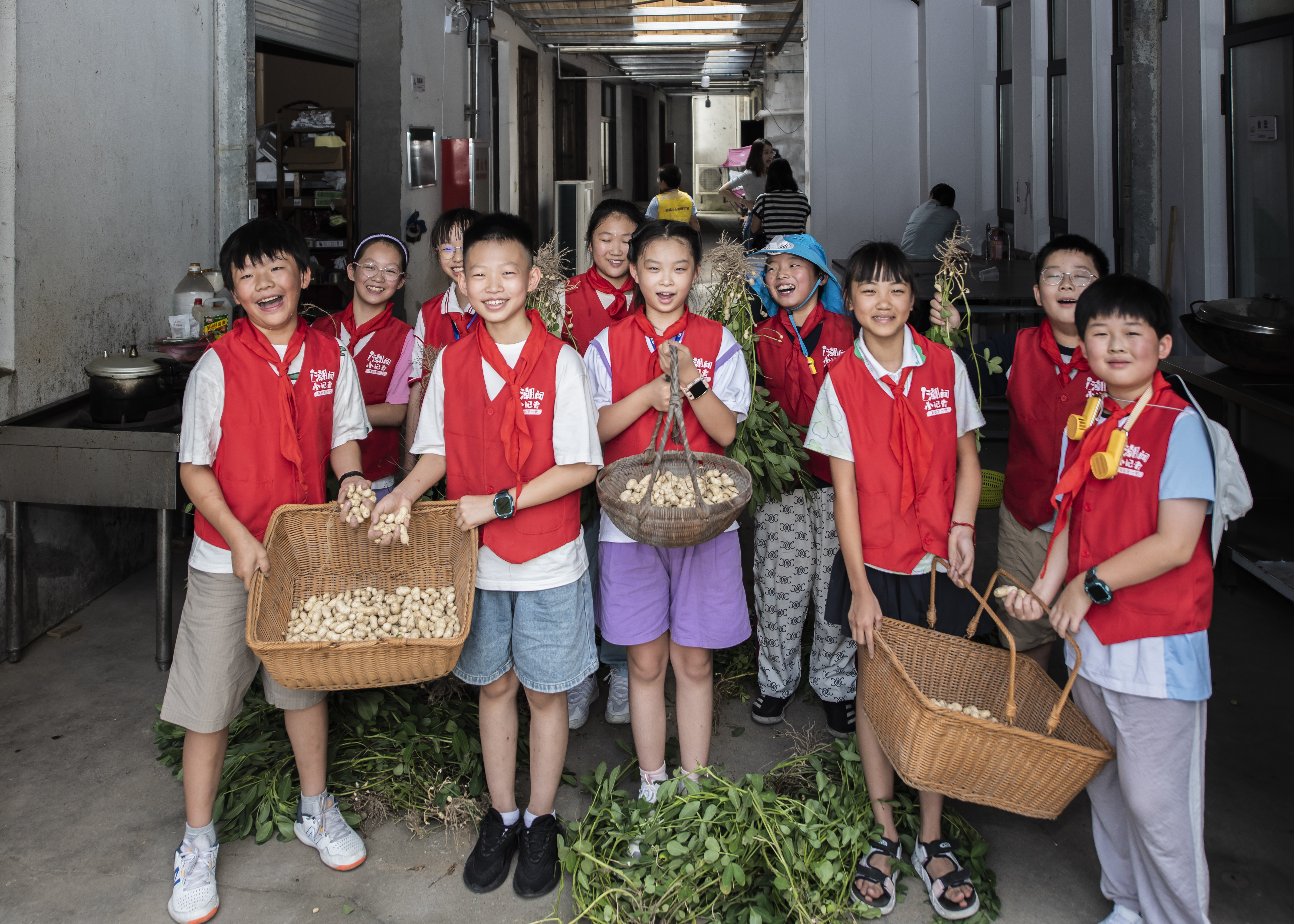 在位于梁弄镇的余姚市关心下一代校外教育阵地——四明山耕自然课堂,小记者们先参加了“小小农耕员 满满新收获”体验农耕文化活动。大家兴致勃勃地体验了采摘花生,即使双手粘上了厚厚的泥土,泥巴弄脏了衣服,也丝毫没有影响孩子们收花生的热情。在植物拓印探索课堂上,小记者们仔细挑选叶片、精心设计造型、小心翼翼粘贴,经过一番敲打,植物图案便清晰地拓印在布包上。小记者们相互欣赏着自己的作品,兴奋不已。在随后进行的农场小奥运活动中,小记者们还用自己的竞赛积分兑换了葡萄、玉米等,收获满满。
