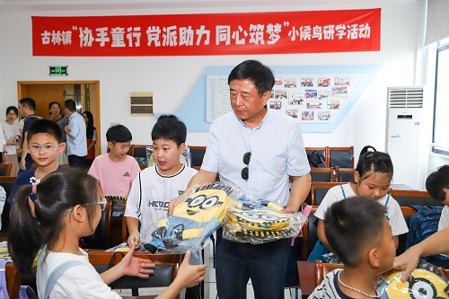 调研组一行先后走访了段塘街道新典社区“假日学校”、古林镇文体中心假日学校,详细了解“假日学校”的生源、课程安排、师资配备、办学资金来源等情况,并亲切慰问在酷暑天气中坚持服务青少年们的“五老”志愿者和大学生志愿者们,感谢他们的真情付出。同时,调研组向“五老”志愿者们送上慰问品,向学生们赠送各类学习和文体用品,祝愿小朋友们在“假日学校”学有所得。